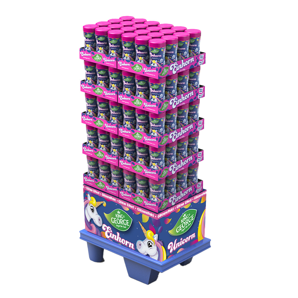 Klassiske varianter som citron & fersken, tofarvede tedrikke og mange sæsonbetonede varianter vil overbevise alle forbrugere på dit marked. KING GEORGE instant te kan tilberedes varmt og koldt. Tedrikkene fås i 4 og 8 liter. De assorterede bakker og farverige displayløsninger garanterer et hurtigt salg.