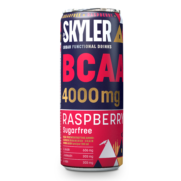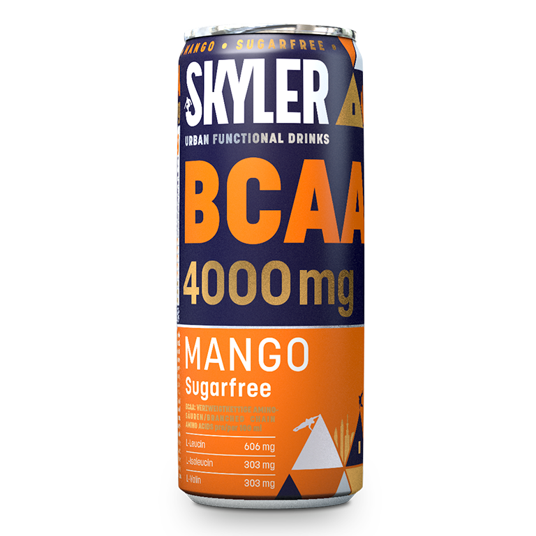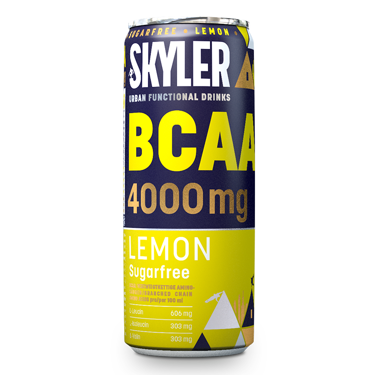 Skyler BCAA ist kein Energy Drink, sondern ein Sports Drink, angereichert mit essentiellen Aminosäuren – sogenannte BCAAs (Branched-Chain Amino Acids). BCAAs verringern die Ermüdung der Muskeln und können somit effektiveren Muskelaufbau und Fettabbau fördern. Sie werden nicht vom Körper selbst produziert, weshalb sie durch die Nahrung aufgenommen werden müssen. Das Getränk enthält 4000mg BCAA und 105mg Koffein pro 330ml und bietet somit eine perfekte Mischung für die Optimierung des Trainings und eine gute Regeneration danach. Ein Hochleistungsgetränke für die Steigerung von Leistung und Ausdauer – gesüßt mit Sucralose. Fitnessgetränke boomen – nutzen Sie diese Chance mit SKYLER BCAA.