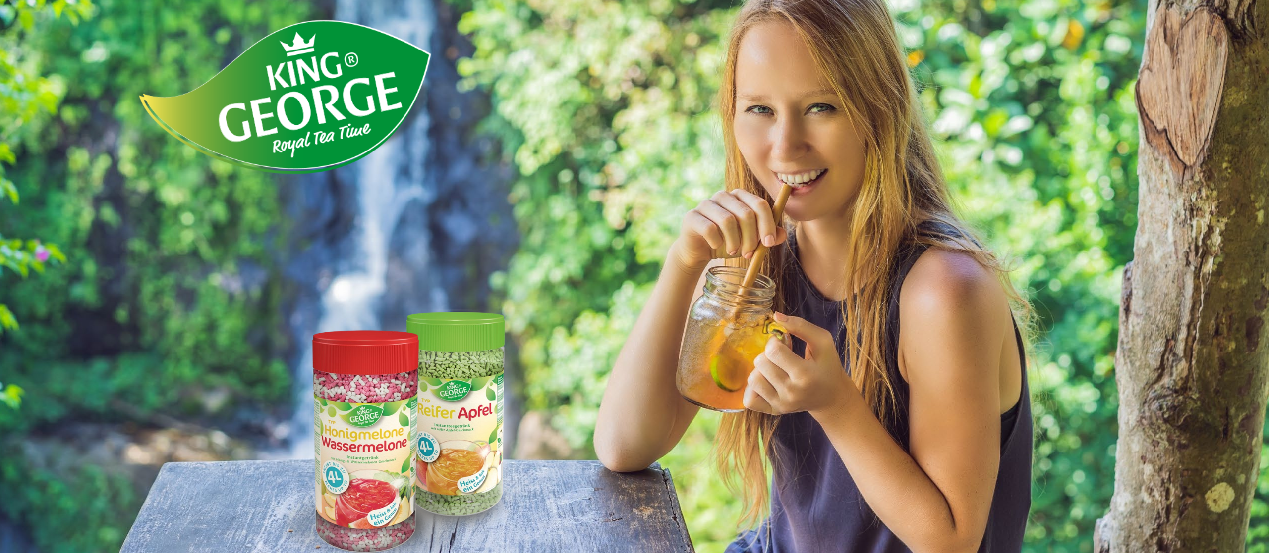 Das Sortiment der Instantgetränke von KING GEORGE hat Zuwachs bekommen: Neu dabei sind die Geschmacksrichtungen „reifer Apfel“ sowie die erfrischende Kombination aus „Honig- & Wassermelone“.