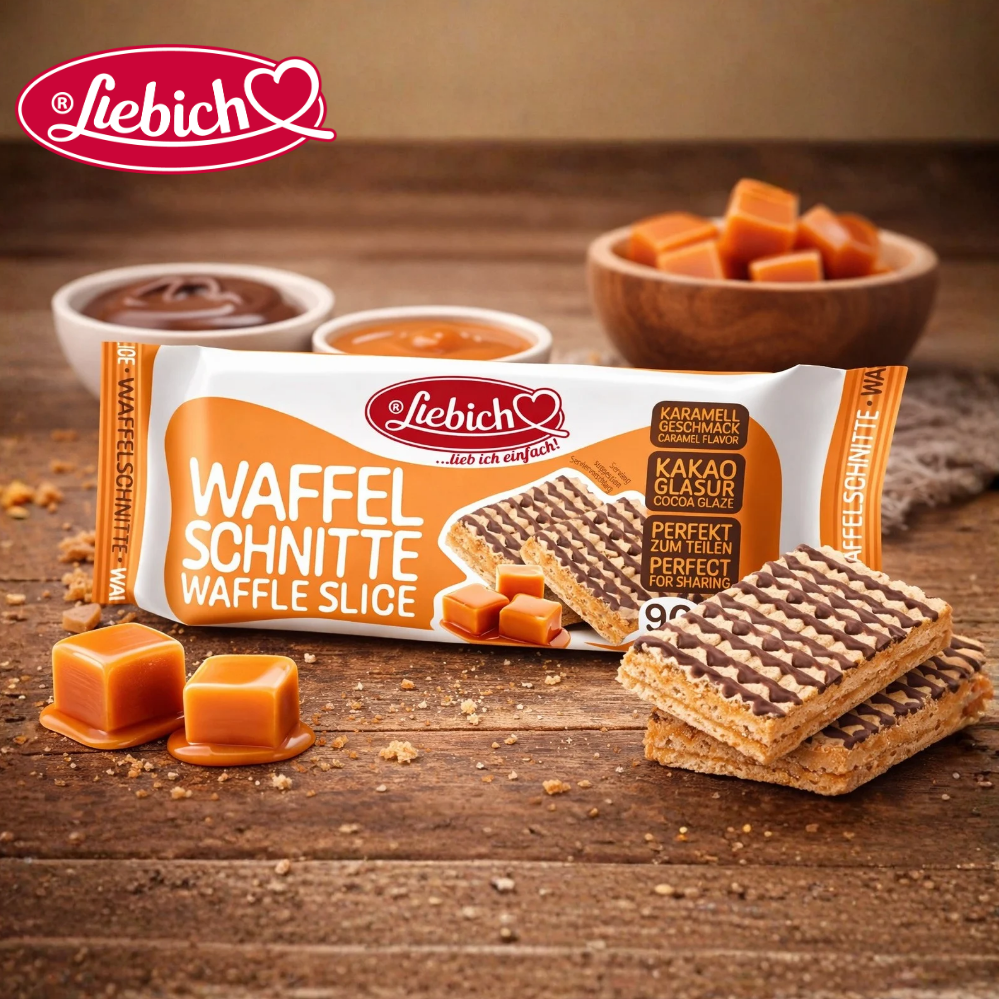 Mit diesem Produktlaunch erweitert LIEBICH das Snacksegment um eine knusprig süße Neuheit: zarte Waffel trifft auf cremige Karamellfüllung und wird von einer feinen Kakaoglasur abgerundet. Der integrierte Bruchstreifen sorgt für einfaches Teilen, während das Format ideal für unterwegs ist.